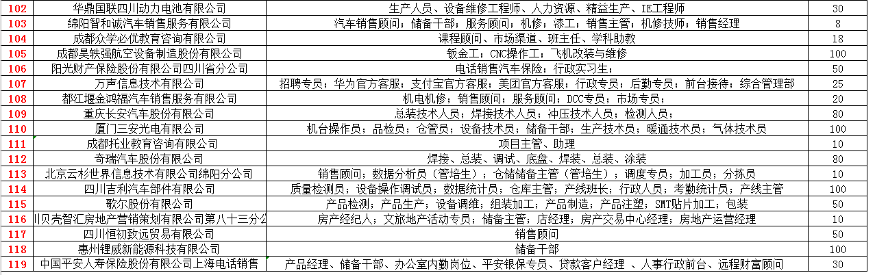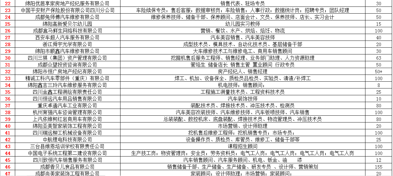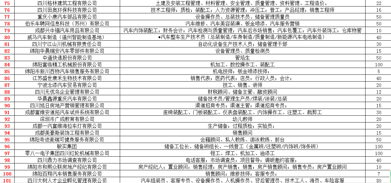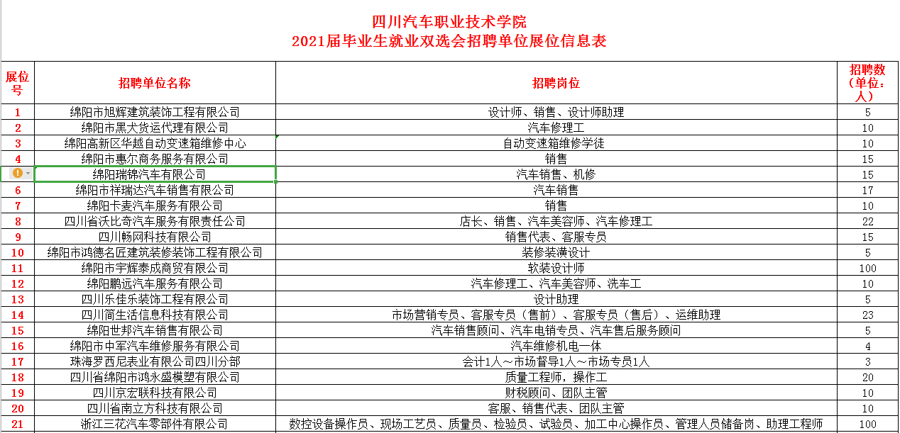四川汽车职业技术学院 2021届毕业生就业双选会招聘单位展位信息表